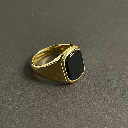 24K Gold Plated Black Onyx Stone Ring For Men/Women