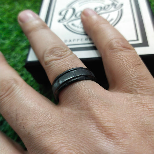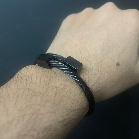 Black Cuff Bangle Bracelet & Rings for Men Women