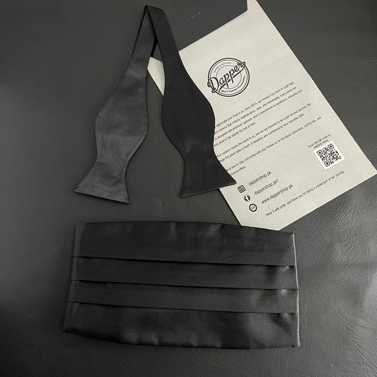 Black Cummerbund and Self Bow Tie For Men (Premium)