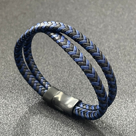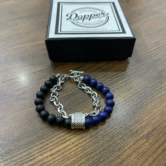 Blue & Matt Black Stone Double Chain Bracelet For Men