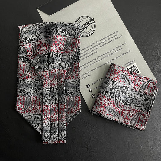 Emperor's Paisley Ascot Tie Jacquard Woven Cravat Tie and Pocket Square Set