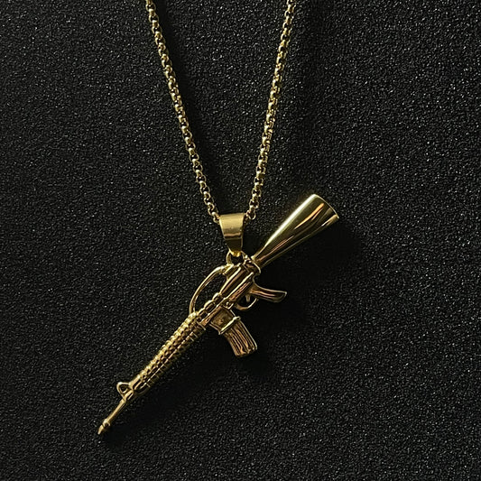 Golden Assault Rifle M16 Fashion Pendant Necklace For Men
