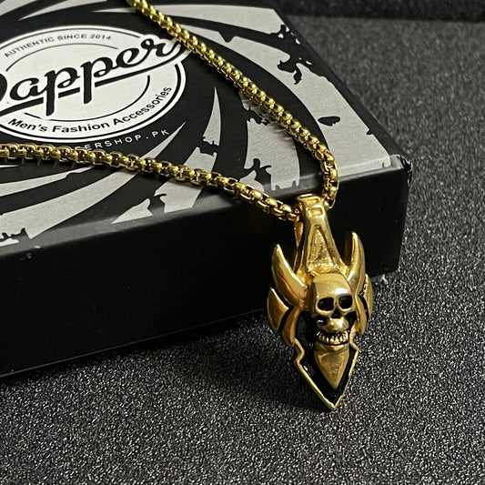 Golden Demon Skull Pendant Necklace For Men