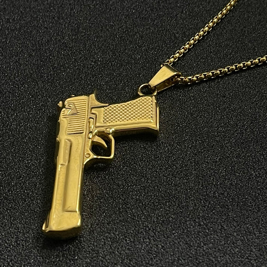 Golden Heavy Pistol Fashion Pendant Necklace For Men