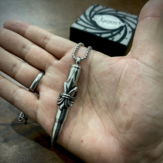 Heavy Biker Silver Crown Bullet Pendant Necklace For Men