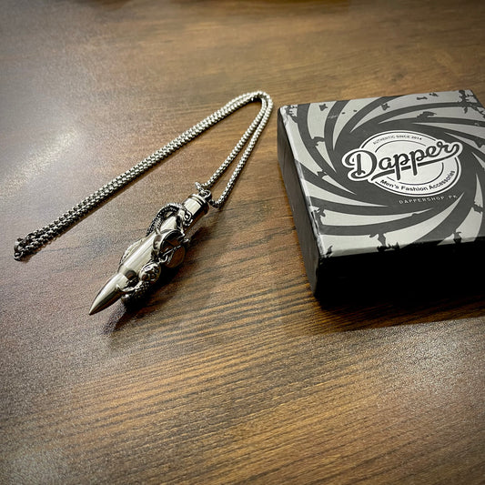 Heavy Biker Snake Bullet Pendant Necklace For Men