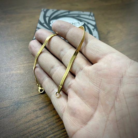 Light Weight 3mm Golden Flat Snake Bracelet For Men/Women