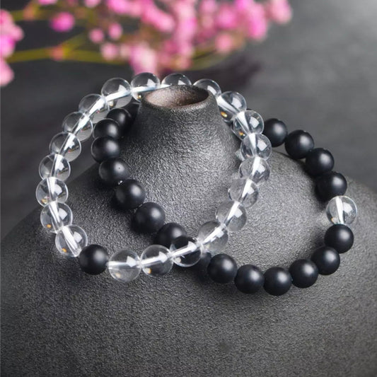 Matt Black & Transparent White Energy Stone Beads Distance Bracelet Set Couple Bracelet