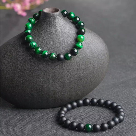 Matt Black & Green Agate Energy Stone Beads Distance Bracelet Set Couple Bracelet