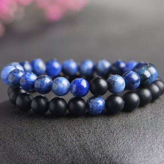 Matt Black & Blue Agate Energy Stone Beads Distance Bracelet Set Couple Bracelet