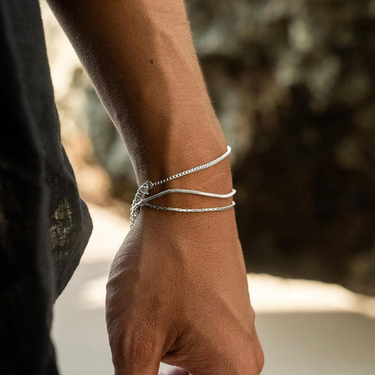 Minimal Silver Bracelet Set For Men (Pack of 3)