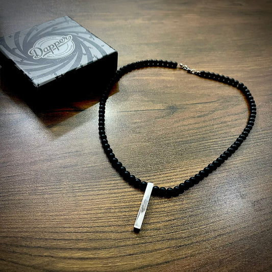 Minimal Silver Bar & Matt Beads Pendant Necklace For Men