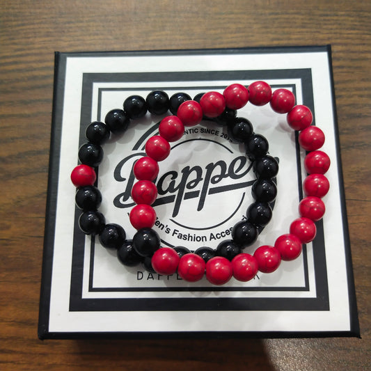 Red & Black Howlite Energy Stone Beads Distance Bracelet Set Couple Bracelet