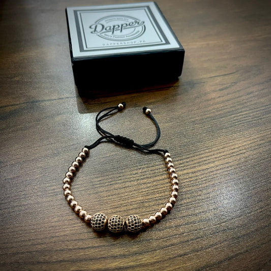 Rose Gold Cubical Zircon Paved Triple Beads Bracelet