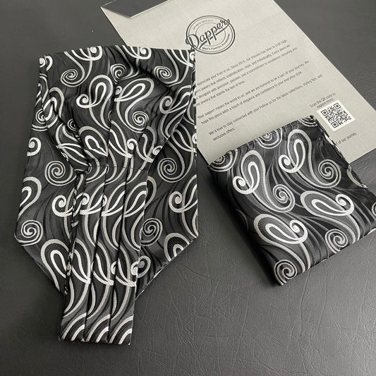 Signature Elite Ascot Tie Jacquard Woven Cravat Tie and Pocket Square Set