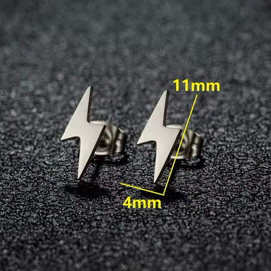 Silver Lightning Earring Pair For Men