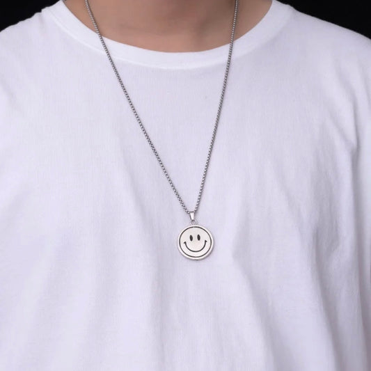 Stainless Steel Smiley Coin Pendant Necklace For Men