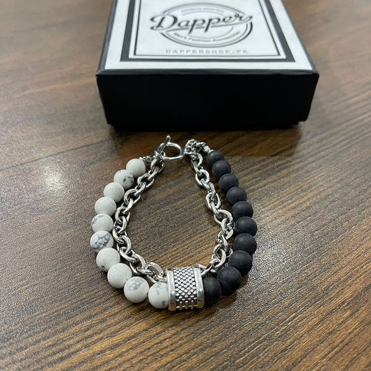 White & Lave Black Energy Stone Beads Distance Bracelet Set Couple Bracelet