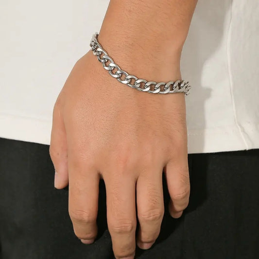 6mm Silver Stainless Steel Byzantine Link Chain Bracelet For Men