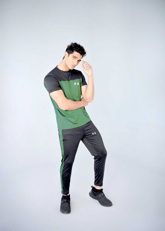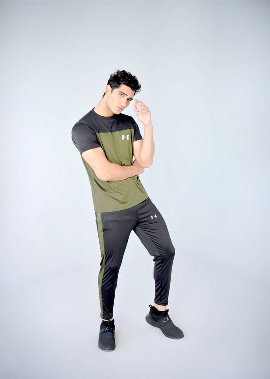UA Olive Green and Black Summer Dri Fit Track Suit
