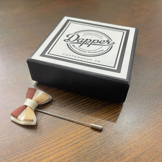 Brown White & Skin Bow Lapel Pin