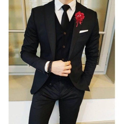 Red Wedding Boutonniere Corsage For Men's Suit