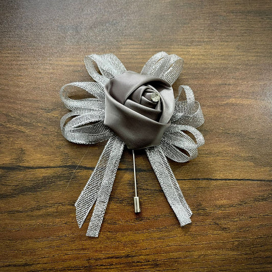 Grey Flower Wedding Corsage Lapel Pin For Men