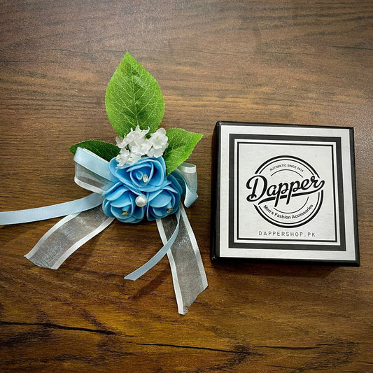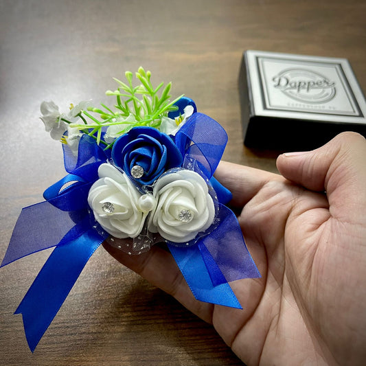 Blue and White Wedding Corsage For Men