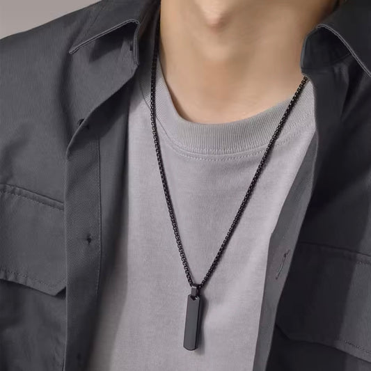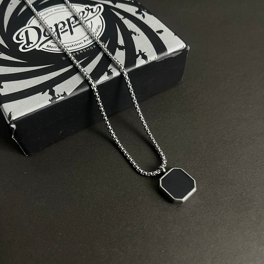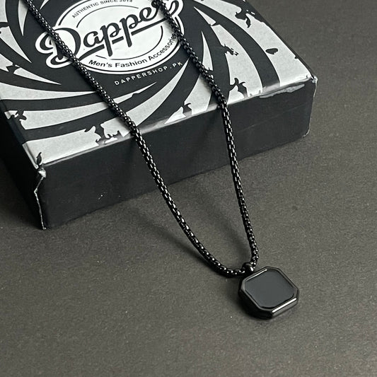 Black Epoxy Square Minimal Pendant Necklace For Men