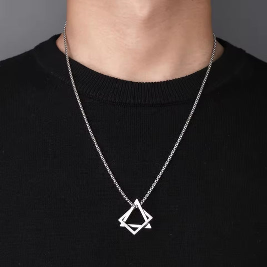 Geometric Silver Pendant For Men