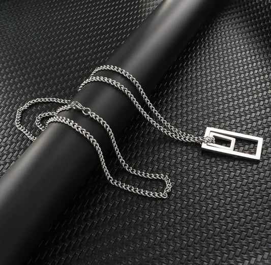 Silver minimal rectangle pendant For Men