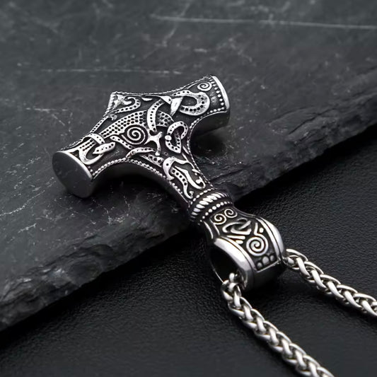 Viking Antique Silver Thor's Hammer Pendant Necklace For Men
