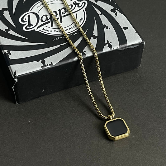 Golden Epoxy Square Minimal Pendant Necklace For Men