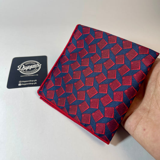 Scarlet Grid Red & Navy Blue Pocket Square For Men