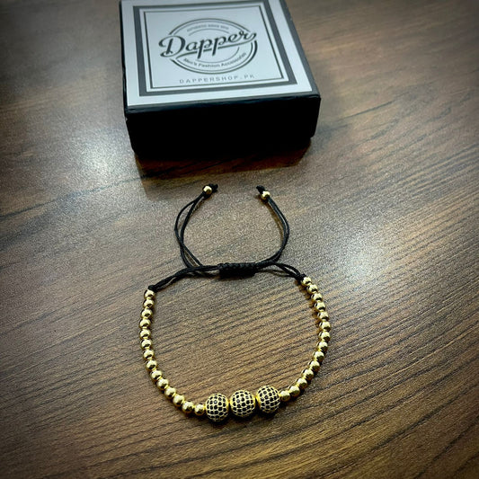 Golden Cubical Zircon Paved Triple Beads Bracelet
