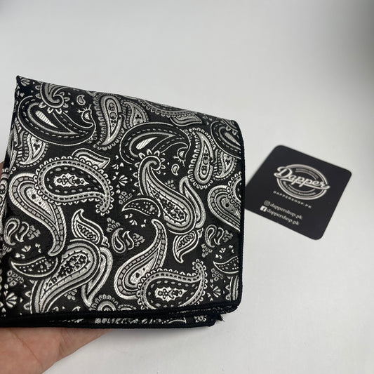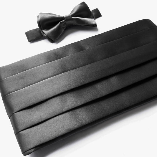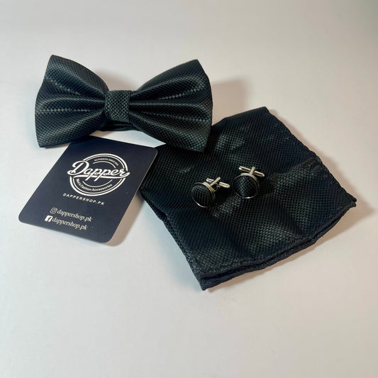 Black Bow Tie, Pocket Square & Cufflinks Set