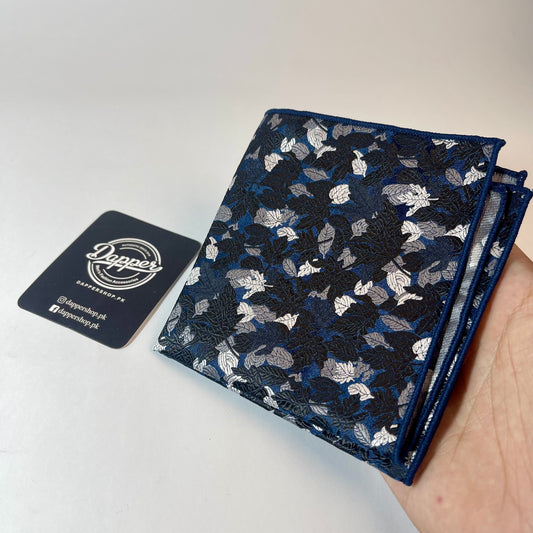 Navy Blue & Silver Floral Pocket Square For Men