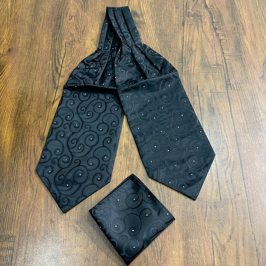Men's Ascot Black Paisley Jacquard Woven Cravat Tie and Pocket Square Set