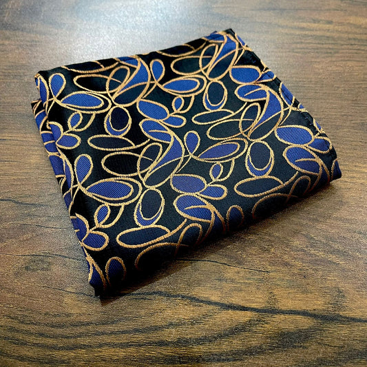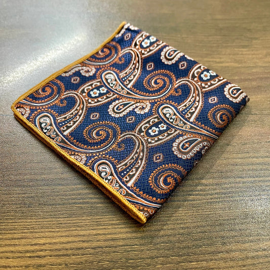 Blue and Gold Paisley Floral Pocket Square For Men