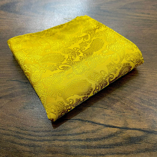 Yellow Golden Paisley Floral Pocket Square For Men