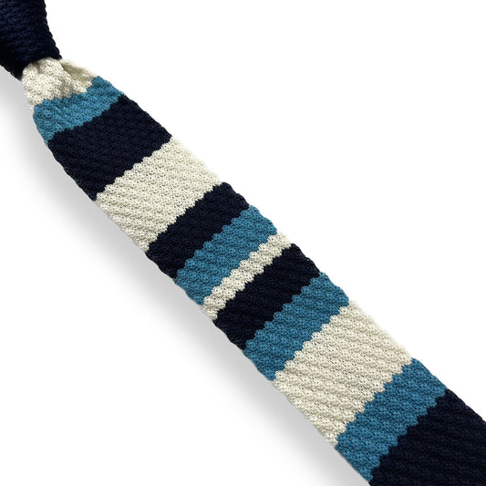 Off White & Blue Stripe Knitted Tie For Men