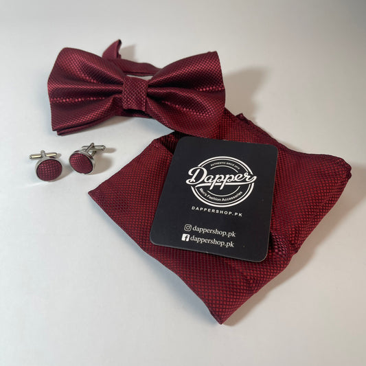 Maroon Bow Tie, Pocket Square & Cufflinks Set