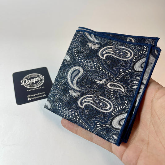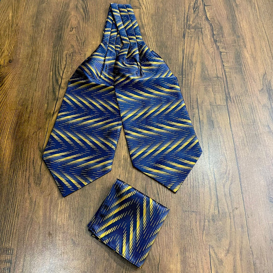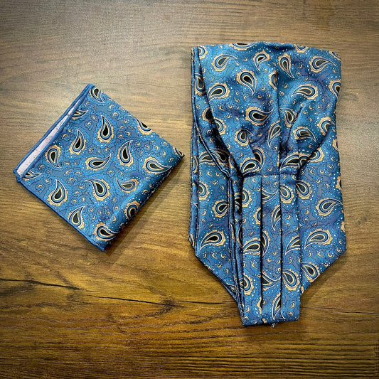 Men's Ascot Blue and Golden Paisley Floral Jacquard Woven Cravat Tie and Pocket Square Set
