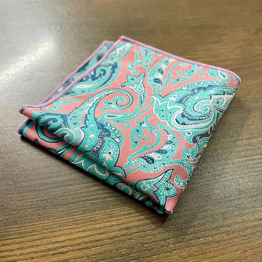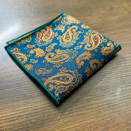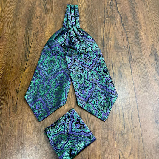 Men's Ascot Green Paisley Floral Jacquard Woven Cravat Tie and Pocket Square Set