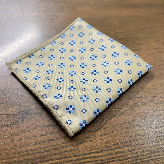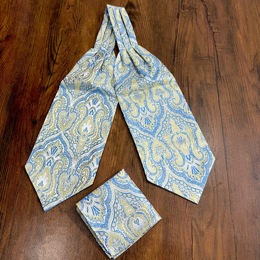 Men's Ascot Blue and Yellow Paisley Floral Jacquard Woven Cravat Tie and Pocket Square Set
