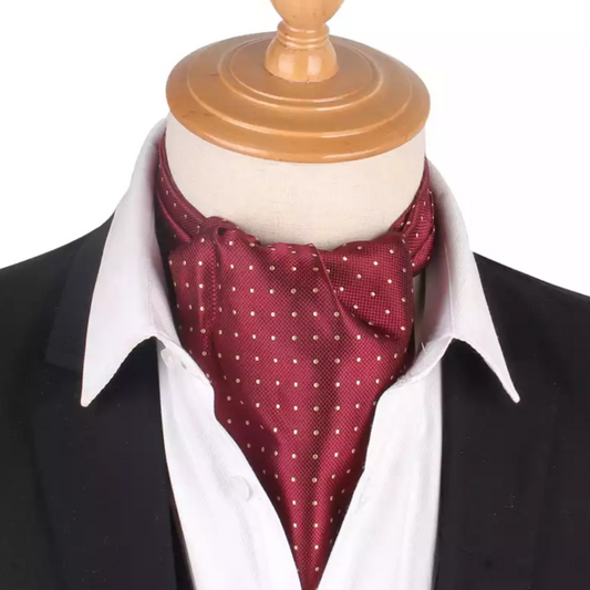 Maroon Polka Dots Jacquard Wooven Ascot Cravat Tie For Men