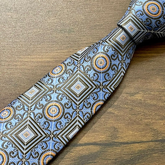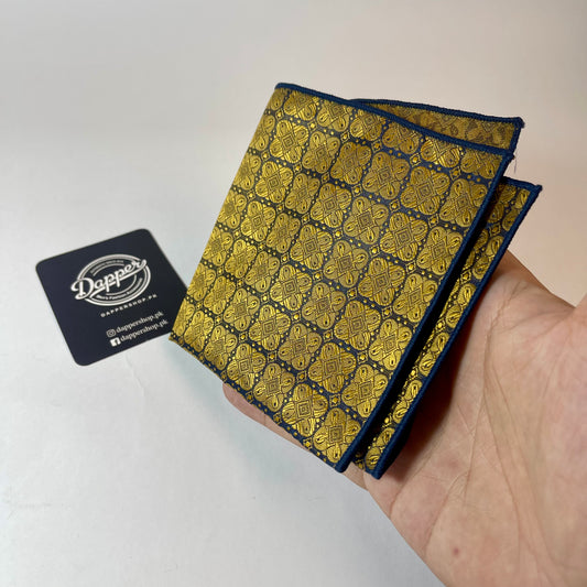Golden & Blue Paisley Jacquard Wooven Ascot Cravat Tie For Men