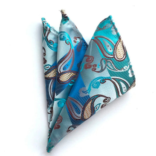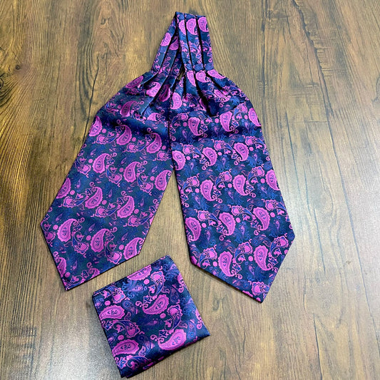Men's Ascot Blue and Pink Paisley Floral Jacquard Woven Cravat Tie and Pocket Square Set