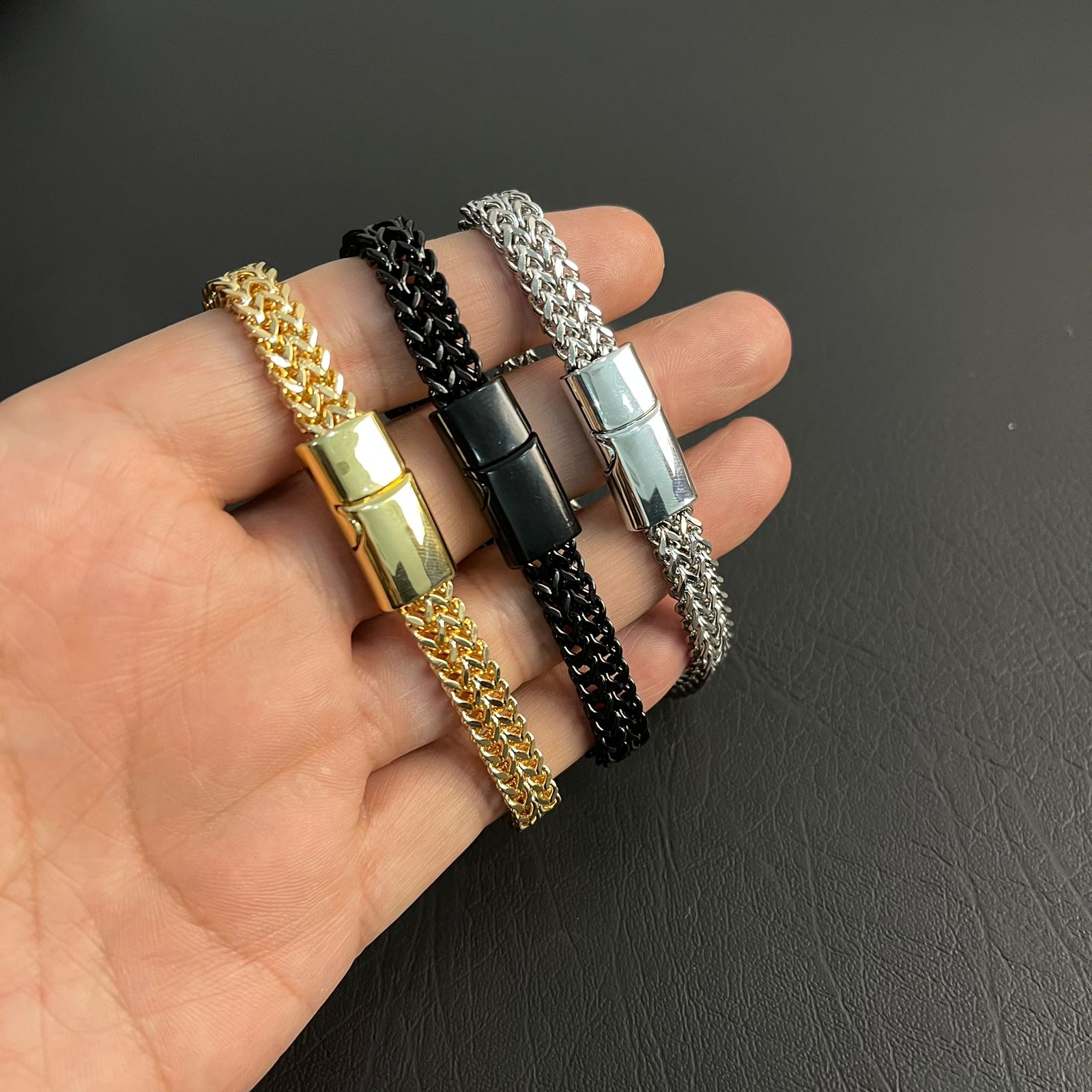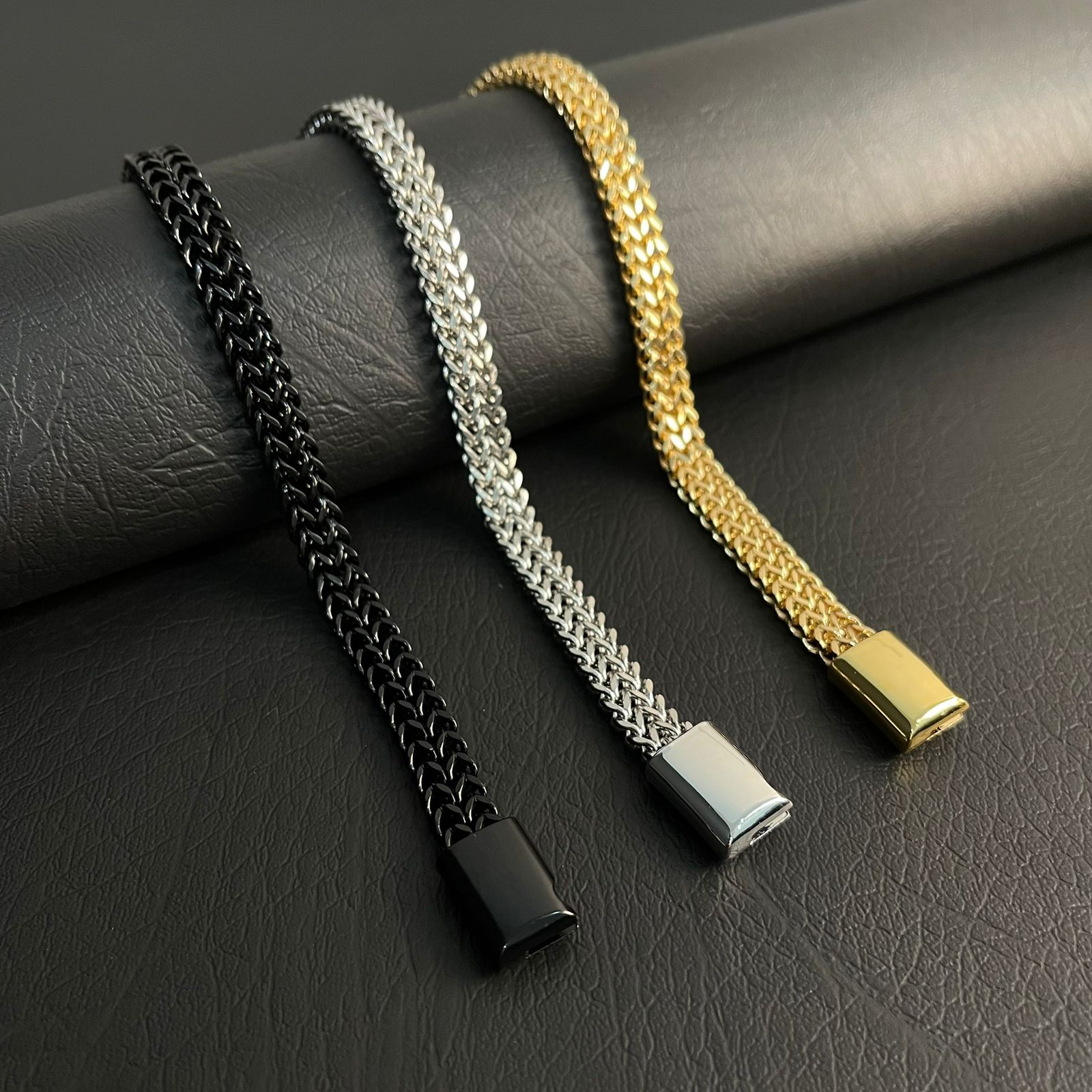 - 8mm in Width 3mm in Thickness Two-Strand Franco Chain Bracelet, Masculine Appearance, Fit to Men Perfectly.