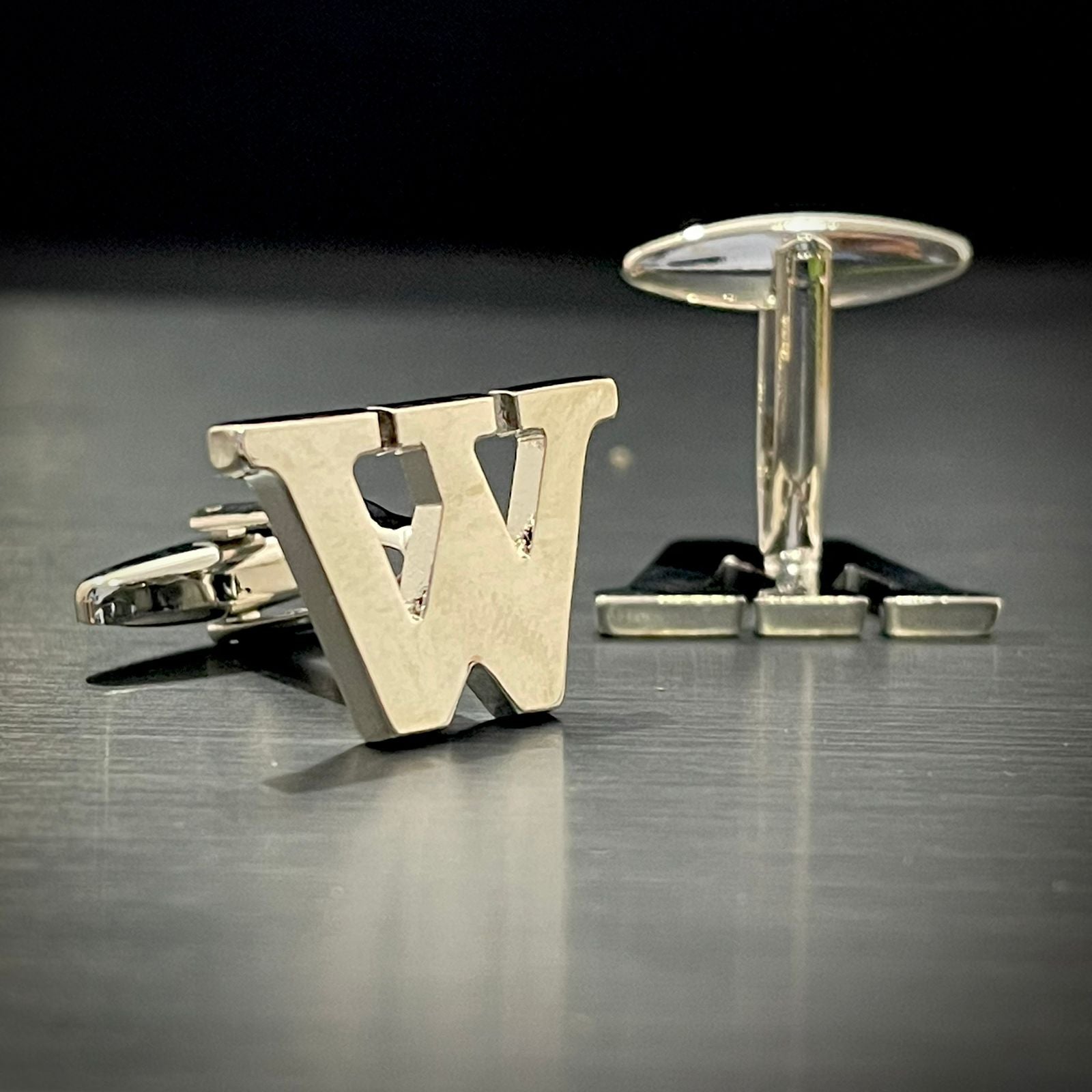 Waqas Ahmad W Letter Alphabet Silver Cufflink